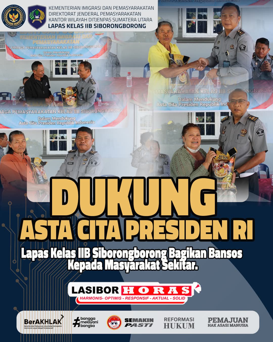 fakta62news.com, | Lapas Kelas IIB Siborongborong memberikan bantuan sosial kepada masyarakat sekitar untuk mendukung Asta Cita Presiden Republik Indonesia dan meningkatkan kesejahteraan masyarakat.
