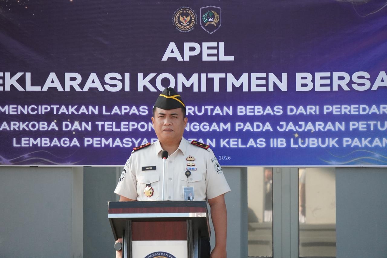 Kalapas Lubuk Pakam, Hakim Sanjaya, memimpin langsung kegiatan di lapangan apel tersebut. Seluruh jajaran pejabat struktural dan petugas mengikuti prosesi ini guna memperkuat integritas serta tanggung jawab dalam memberantas peredaran narkoba dan penggunaan handphone ilegal. Dengan penuh khidmat, seluruh peserta menyatakan komitmen bersama untuk menjauhi segala bentuk pelanggaran yang dapat mencoreng nama baik institusi.
