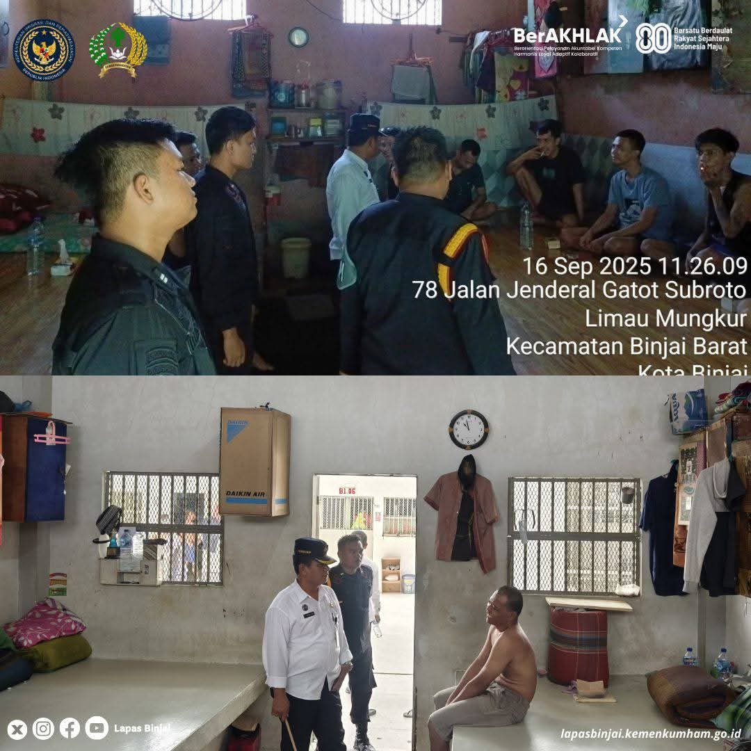 fakta62news.com, | Kepala Kesatuan Pengamanan Lapas (Ka. KPLP) Pariaman Saragih memimpin tim untuk melakukan kontrol rutin di area Blok hunian Warga Binaan Lapas Kelas IIA Binjai, Selasa (16/09/2025).