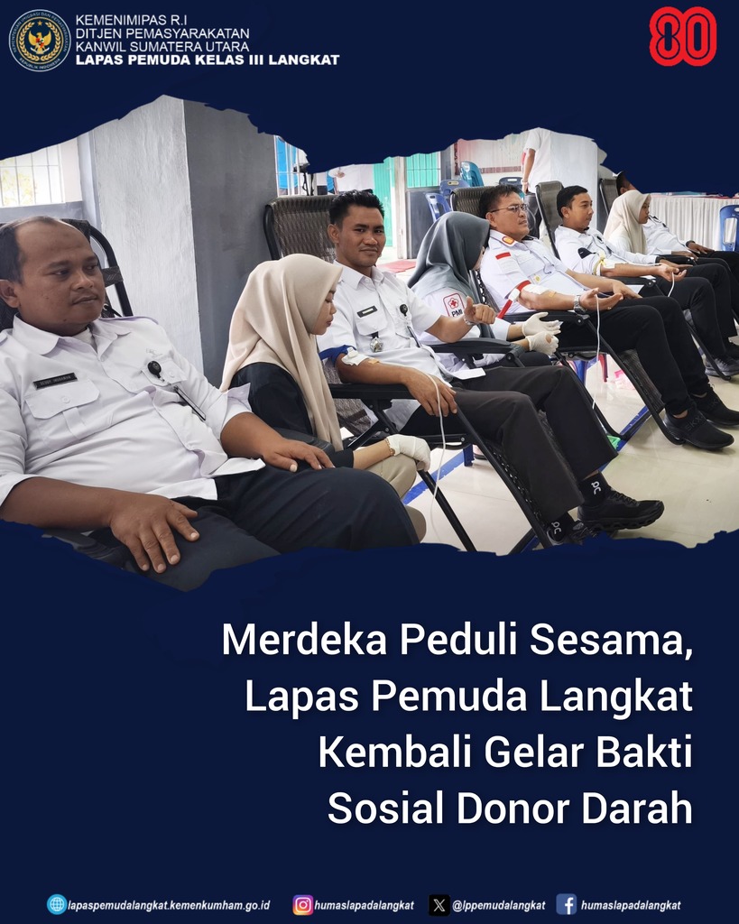fakta62news.com, | Dalam rangka memperingati Hari Ulang Tahun Republik Indonesia ke-80, Lapas Pemuda Langkat menggelar kegiatan bakti sosial donor darah bekerja sama dengan PMI Kabupaten Langkat pada Rabu, 20 Agustus 2025.