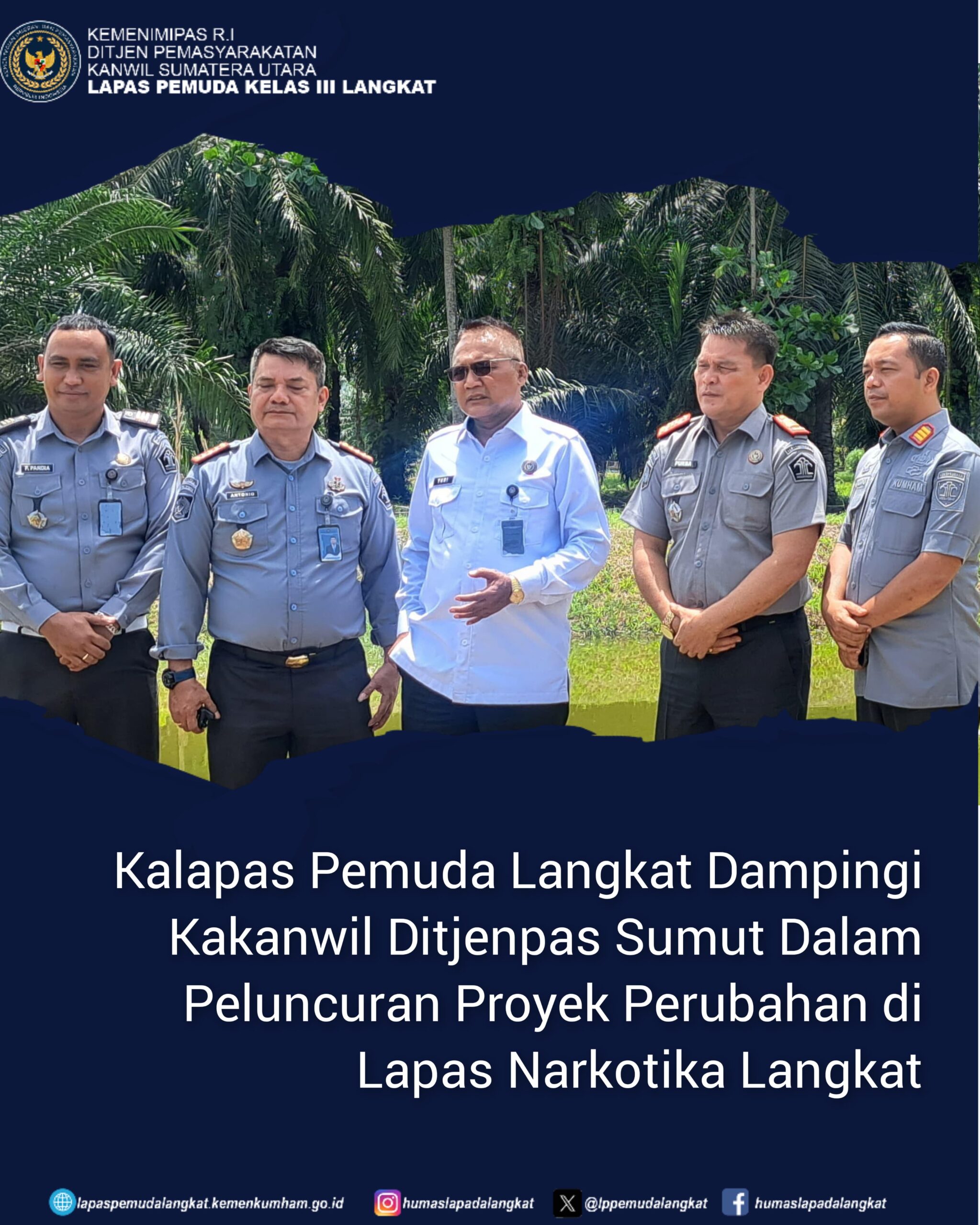 fakta62news.com, | Kabupaten Langkat – Yudi Suseno, Kepala Kantor Wilayah Direktorat Jenderal Pemasyarakatan Sumatera Utara, meluncurkan proyek “Ketahanan Pangan Terpadu Langkat Indonesia” di Lapas Narkotika Kelas IIA Langkat pada Selasa (22/07/2025). Proyek ini bertujuan mengembangkan ketahanan pangan di wilayah Kabupaten Langkat sebagai bagian dari Pelatihan Kepemimpinan Nasional (PKN) Tingkat I.